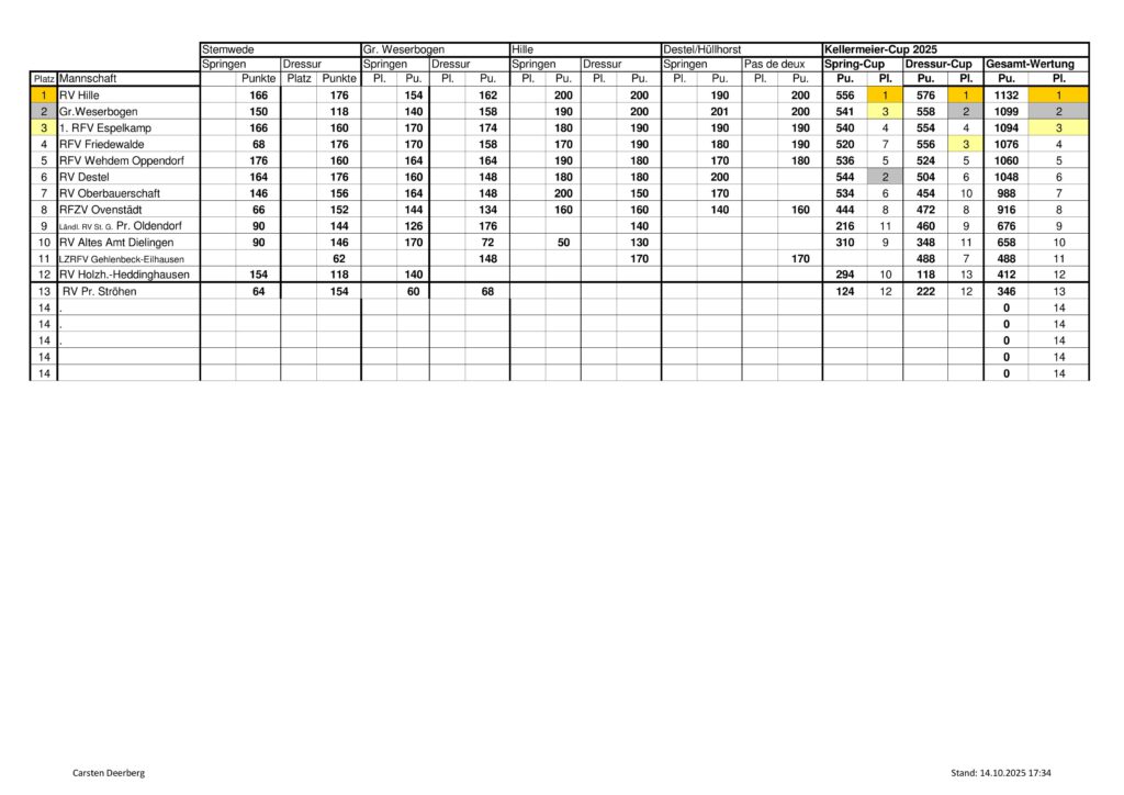 nach den Turnieren in Wehdem-Oppendorf, Großer Weserbogen, Hille, Destel und Hüllhorst