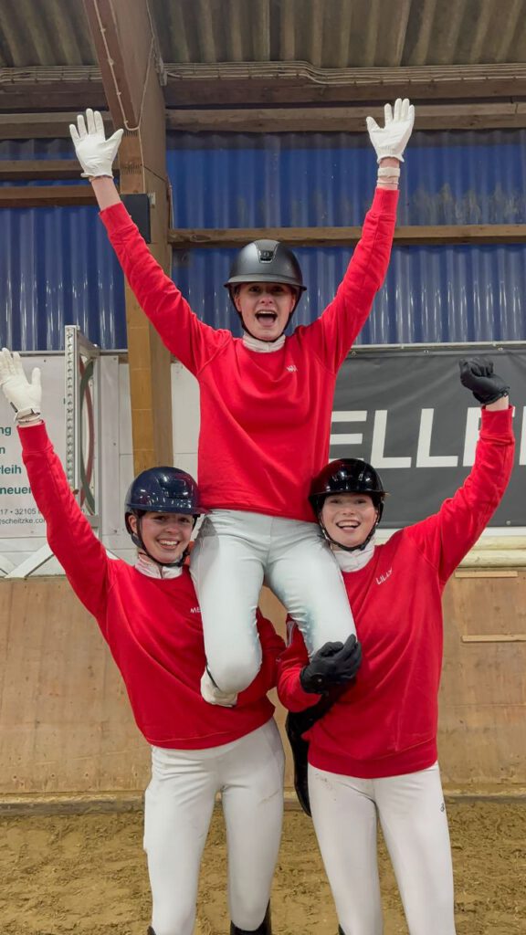 Platz neun gab es für das Team Minden-Lübbecke I mit Carina Seele (RSG Holzhausen II), Zoe Lohmeyer (RFV Hille), Lina Grasshoff (RFV Großer Weserbogen) und Ebru Emily Skrypcak (RSG Holzhausen II). Die Minden-Lübbecker Mannschaft III mit Lara Marie Kopelke (RSG Holzhausen II), Mila Reineking (RV Friedewalde) und Alma Fabry (RSG Holzhausen II) landete auf Platz zehn. Vorgestellt wurden die Teams von Merle Meyer (RV Friedewalde), Naja Grewe (1. RFV Espelkamp) und Lilly Bode (RFV Großer Weserbogen).